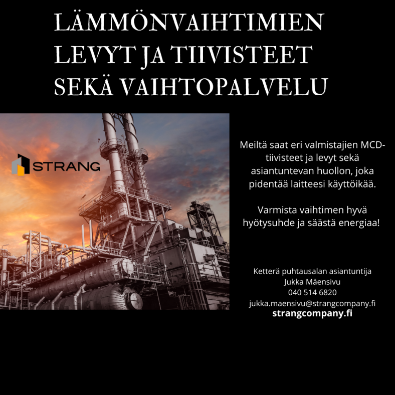 Uutiskirje 5/2025 Toimiiko lämmönvaihtimesi varmasti optimaalisesti?Entä milloin viimeksi tiivisteet ja levyt vaihdettiin? Me Strangilla toimitamme eri valmistajien laadukkaat MCD-tiivisteet ja levyt  –...